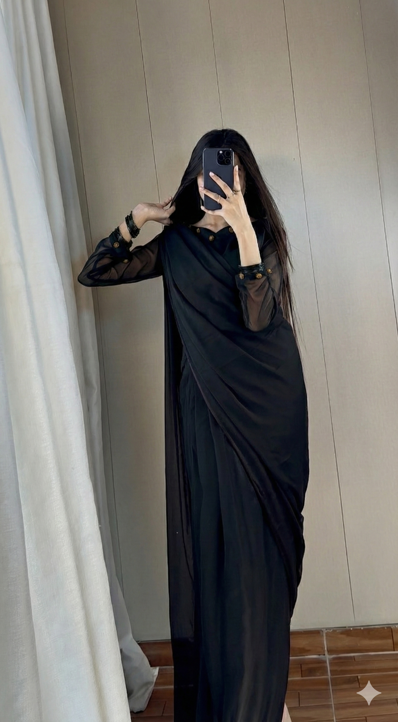 A masterpiece that blends subtle sophistication with modern charm — perfect for formal occasions, evening gatherings, or festive celebrations. The soft fabric and impeccable drape make it an effortless choice for women who value both comfort and style.
