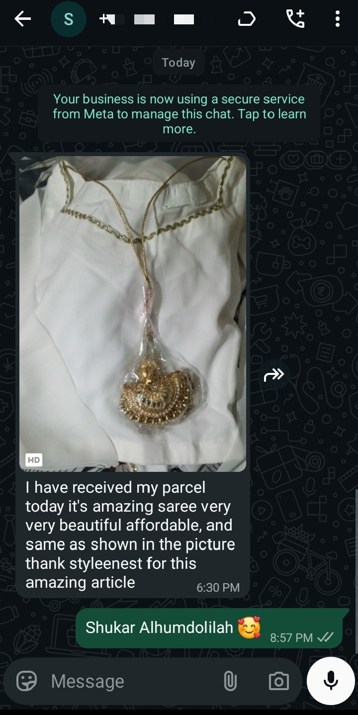 Iska flowy drape aur intricate gold lace finishing isey ek timeless eastern masterpiece banati hai. Yeh sirf ek saree nahi, balke ek statement hai β un khawateen ke liye jo mehfil mein entry se hi apni pehchaan bana deti hain.