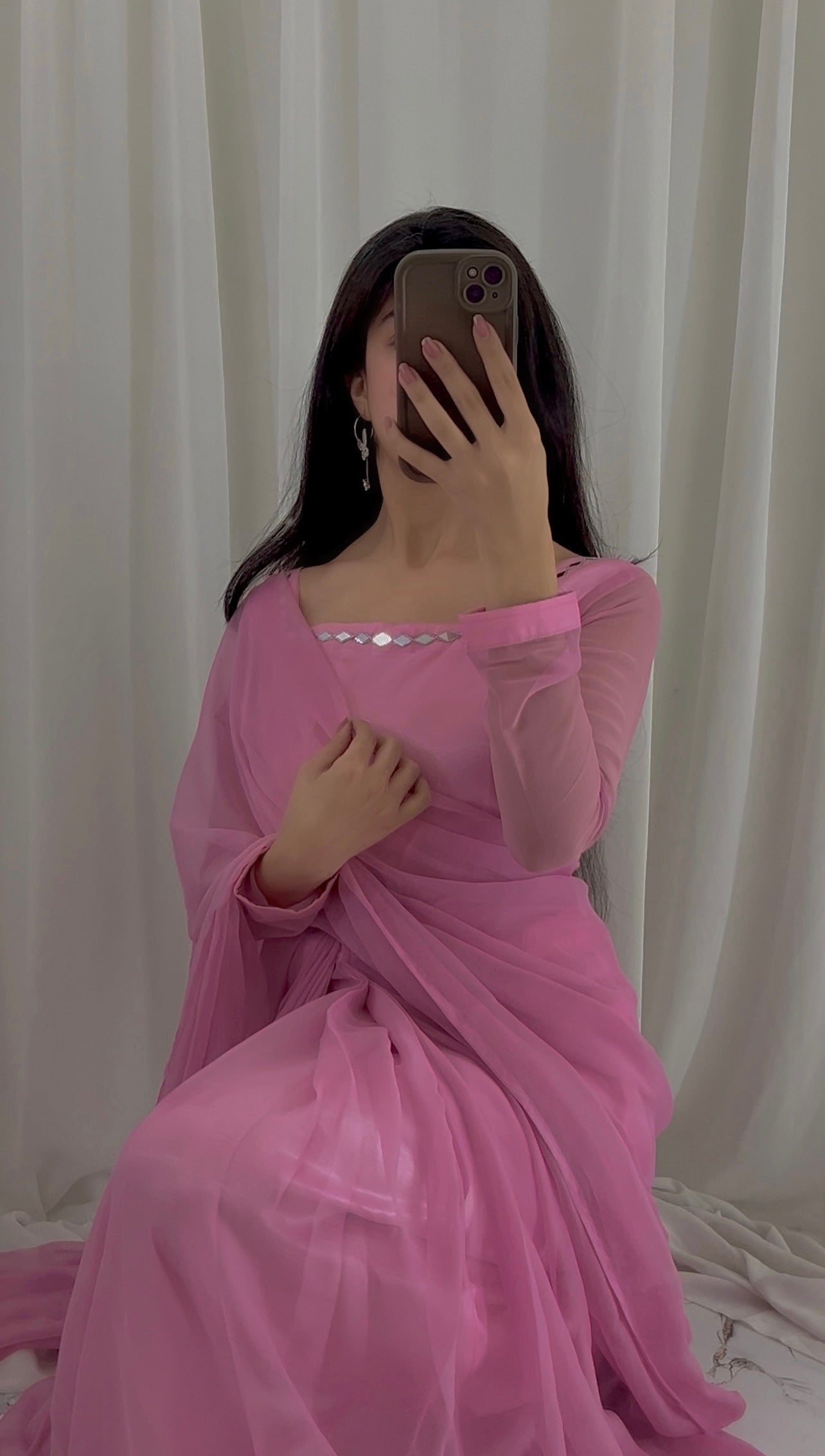 Apne wardrobe ko den timeless elegance ka touch – Shama-e-Husn Chiffon Saree ek aisi creation hai jo har mehfil mein aapki shan ko barhati hai. Soft chiffon fabric ki flowy drape aur inner details is saree ko banati hain aur bhi graceful.